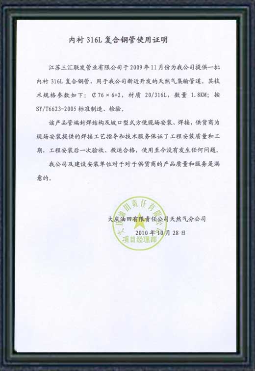 大慶油田用戶使用意見書