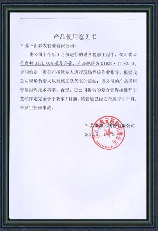 江蘇嘉源用戶使用意見書