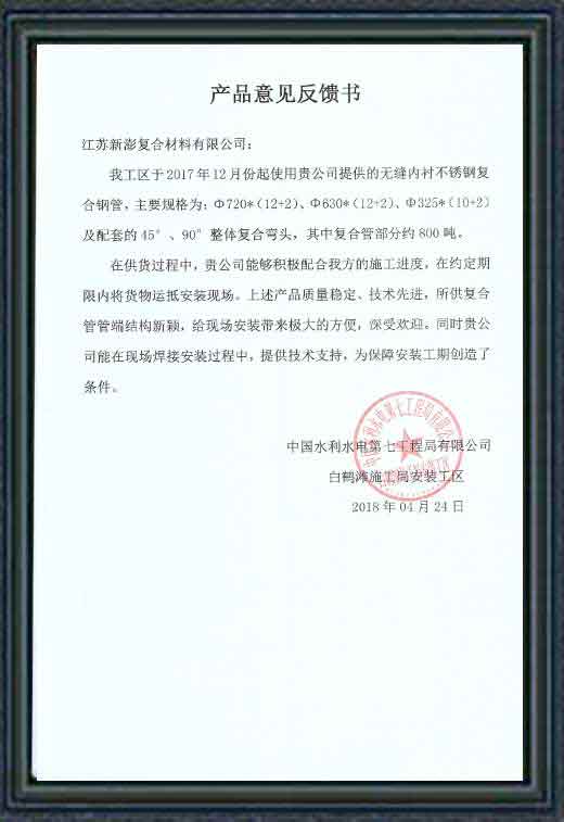 中水七局白鶴灘用戶使用意見書