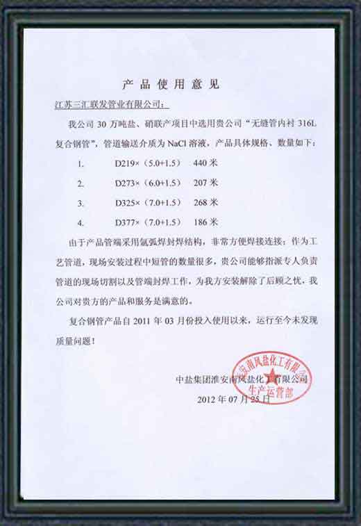 中核核工業用戶使用意見書